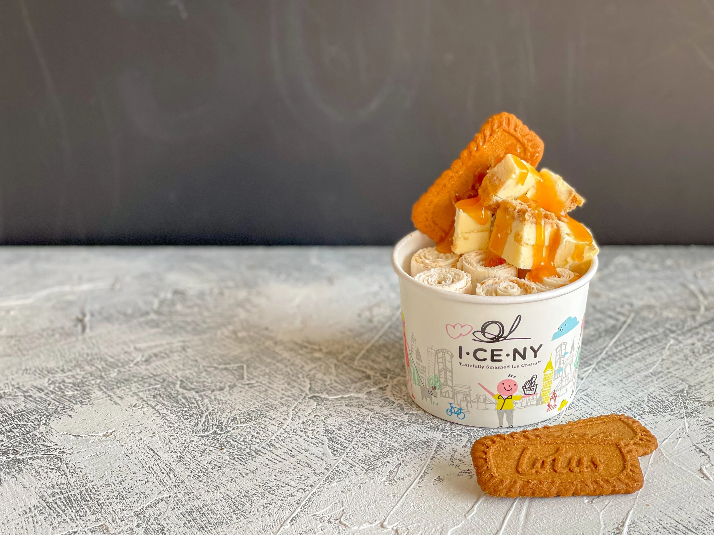 I-CE-NY makes ice cream fresh to order. We convert liquid cream into solid ice cream right in front of you. We are known for delicious Mango Sticky Rice Ice Cream, mango ice cream with coconut-infused sticky rice, Ataulfo mango, and savory coconut sauce.
